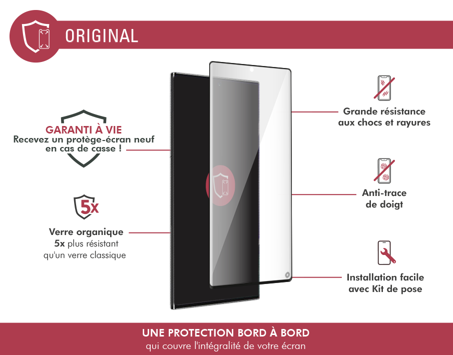 Le protège-écran Garanti à vie qui offre une très haute résistance aux impacts !