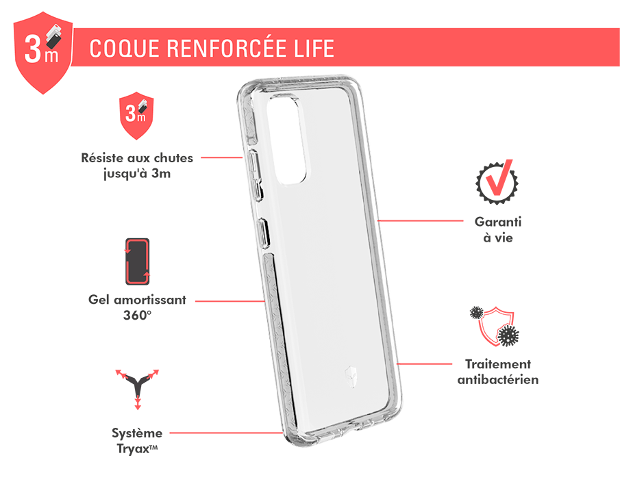 • Contenu du pack : Coque renforcée LIFE 3m + Garantie à vie