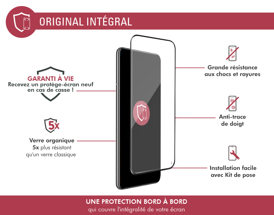 Kit de pose exclusif dédié pour chaque mobile pour une installation simple, rapide et sans bulle.