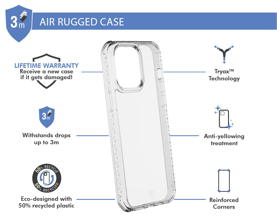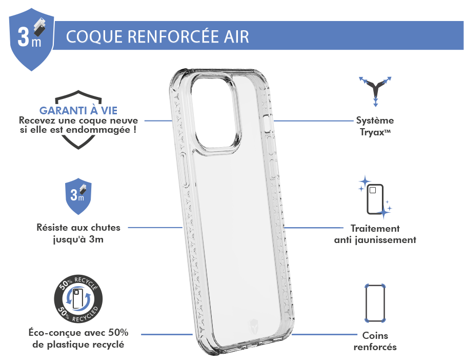• Contenu du pack : Coque renforcée AIR 2m + Garantie à vie