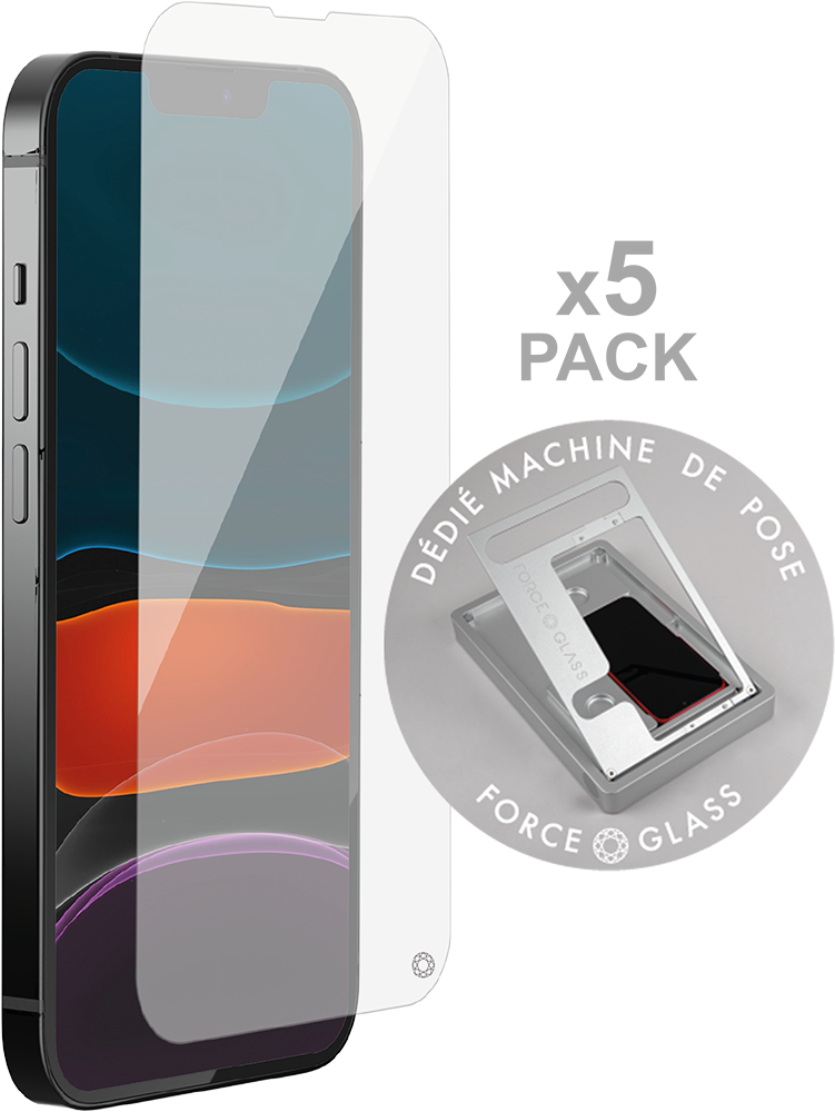 Pack de 5 Verres de protection écran iPhone 13 / 13 Pro / 14 Pour machine de pose + Garantie à vie