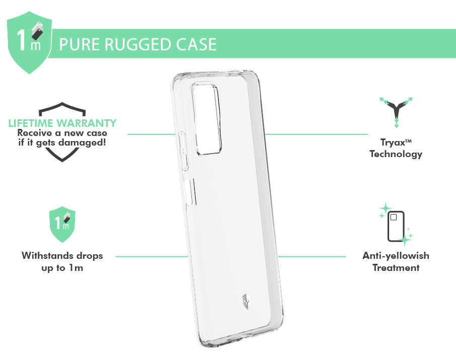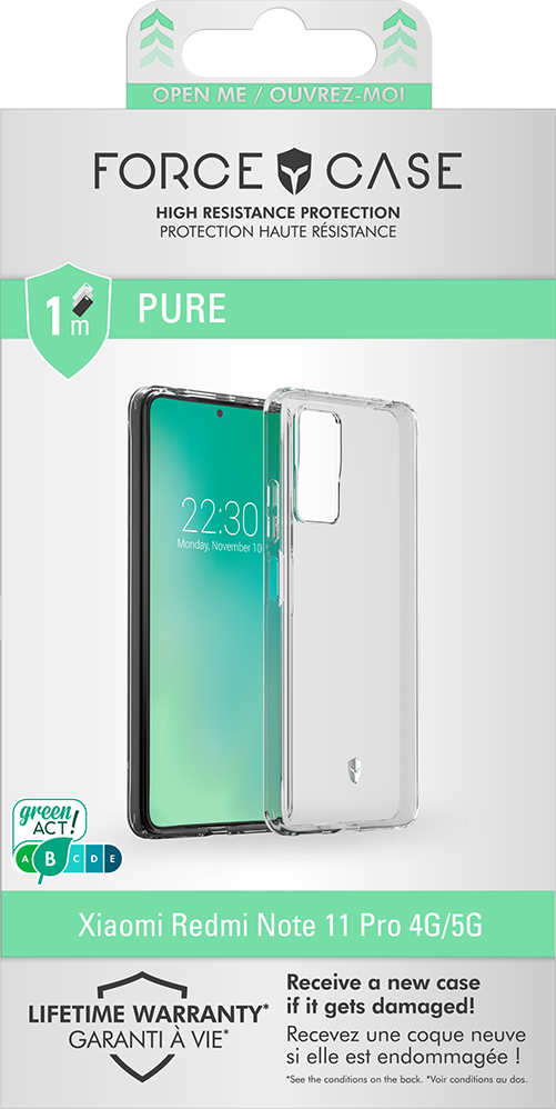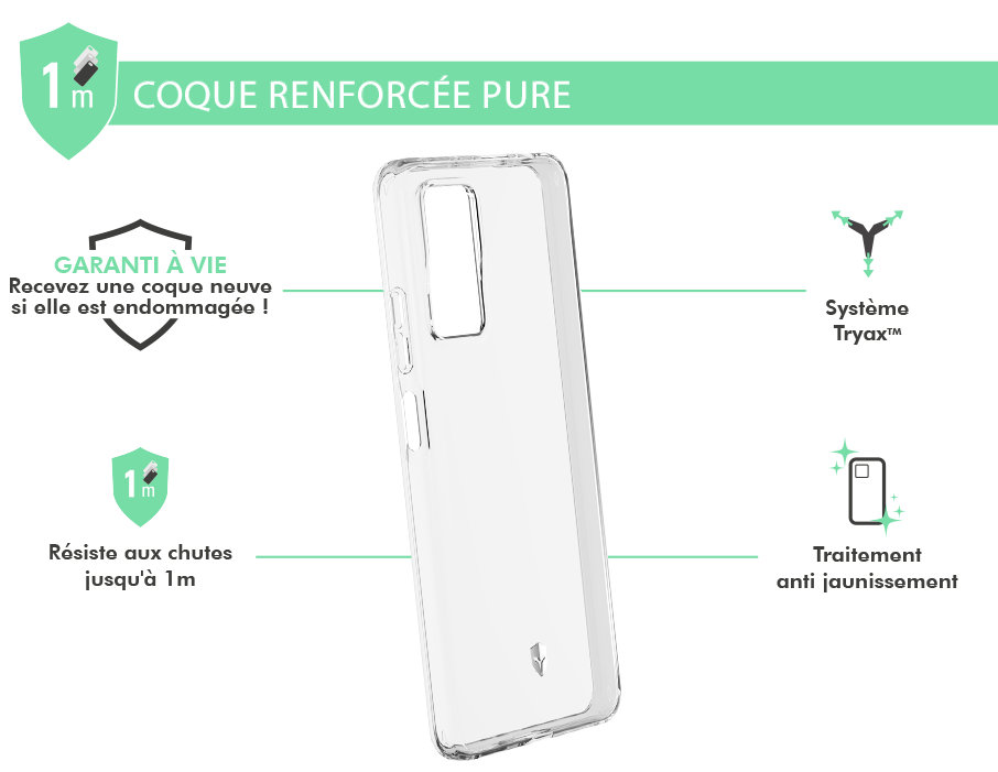 La coque renforcée Pure résiste aux chocs et aux chutes d'1 mètre.