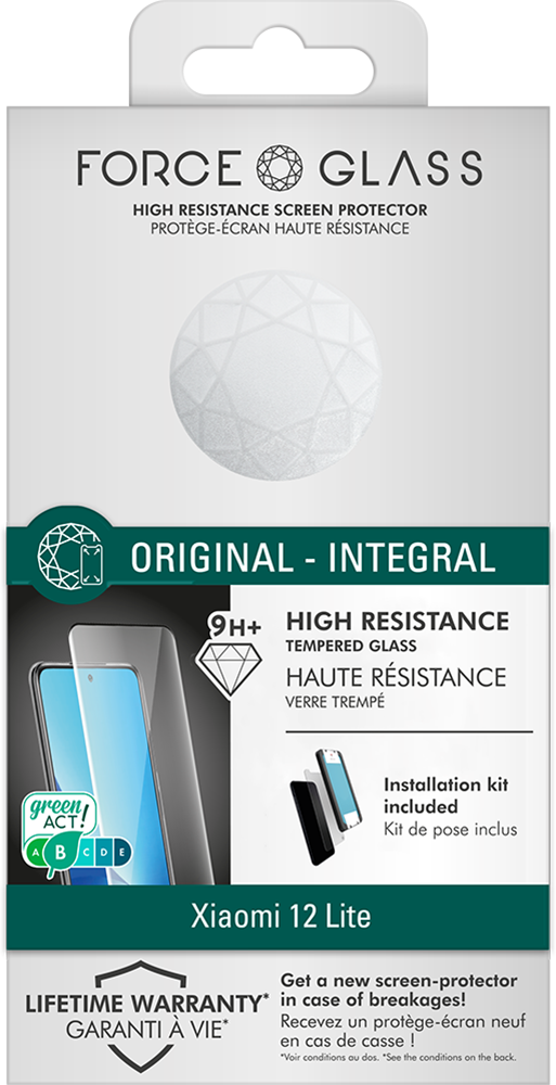 Protège écran Original 2.5D Verre trempé + Kit de nettoyage + Adhésif antistatique + Kit de pose biodégradable exclusif dédié + Garantie à vie