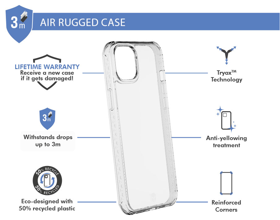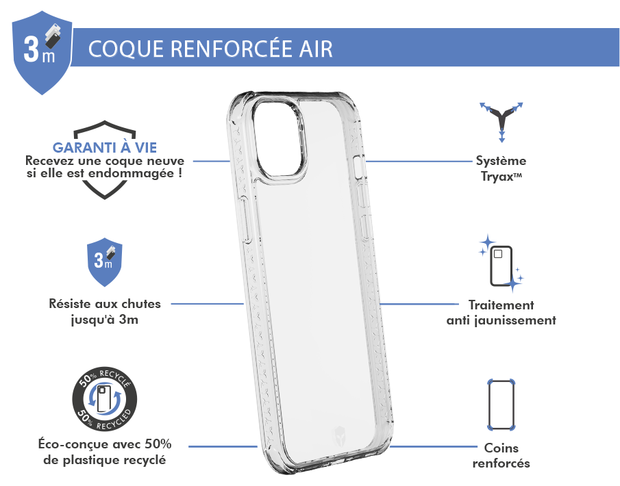 Coque renforcée AIR 3m + Accroche bandoulière universelle + Garantie à vie