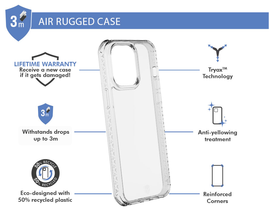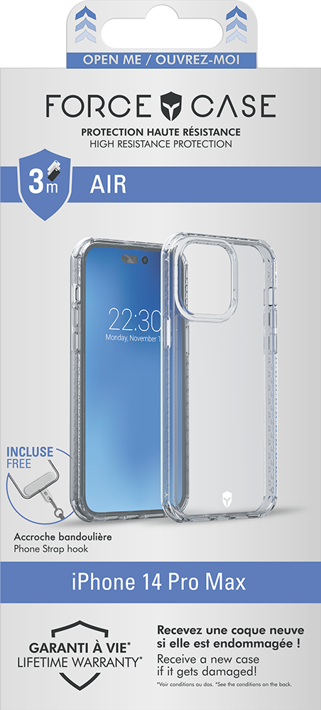 Coque renforcée AIR 3m + Accroche bandoulière universelle + Garantie à vie