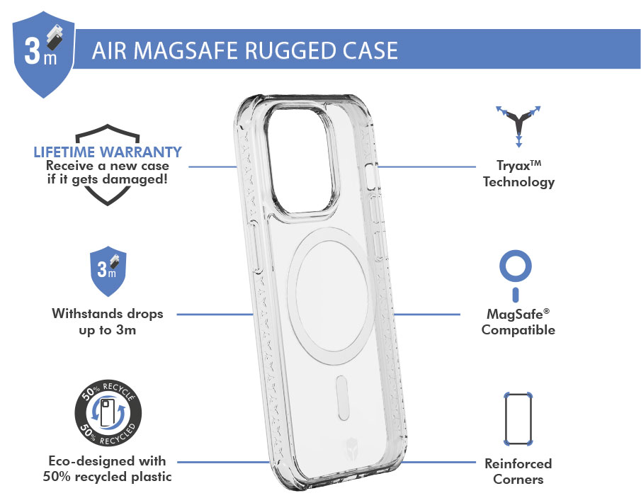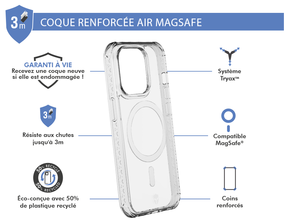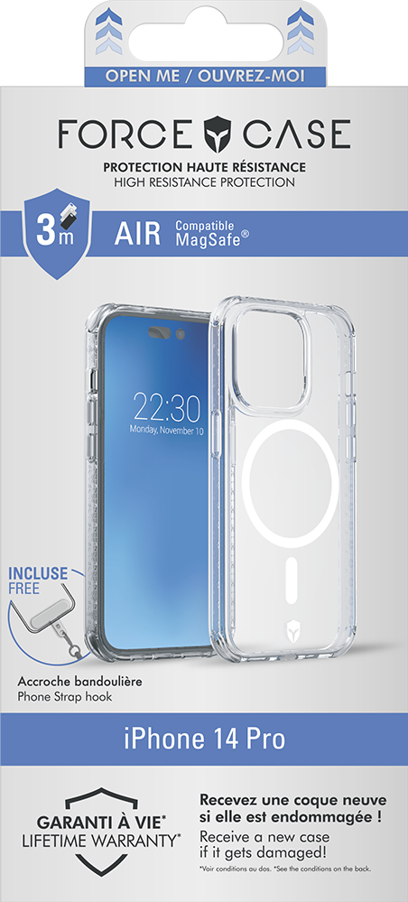 • Pack contents : MagSafe Reinforced Case AIR 3m + Universal Strap holding system + Lifetime Warranty