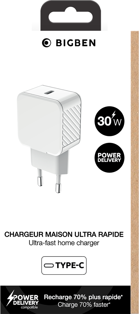 Chargeur USB C 30W Power Delivery + Guide d'utilisation/Sécurité/Garantie