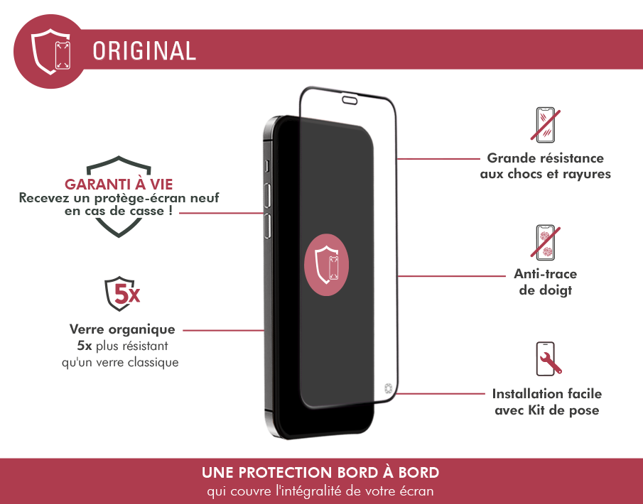 Le protège-écran Garanti à vie qui offre une très haute résistance aux impacts !