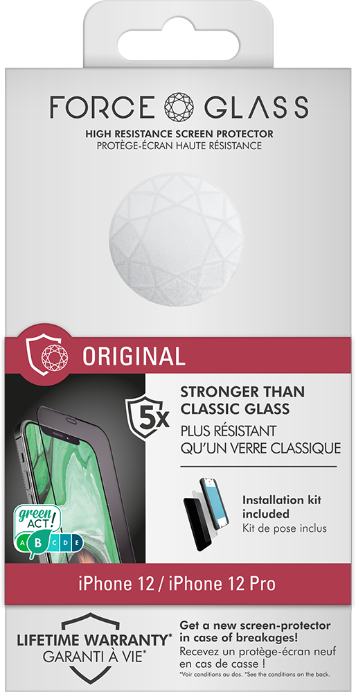 Accueil / Accessoires / Protection / Protège écrans / Protège écran iPhone 12 / 12 Pro Original Verre organique + Garantie à vie