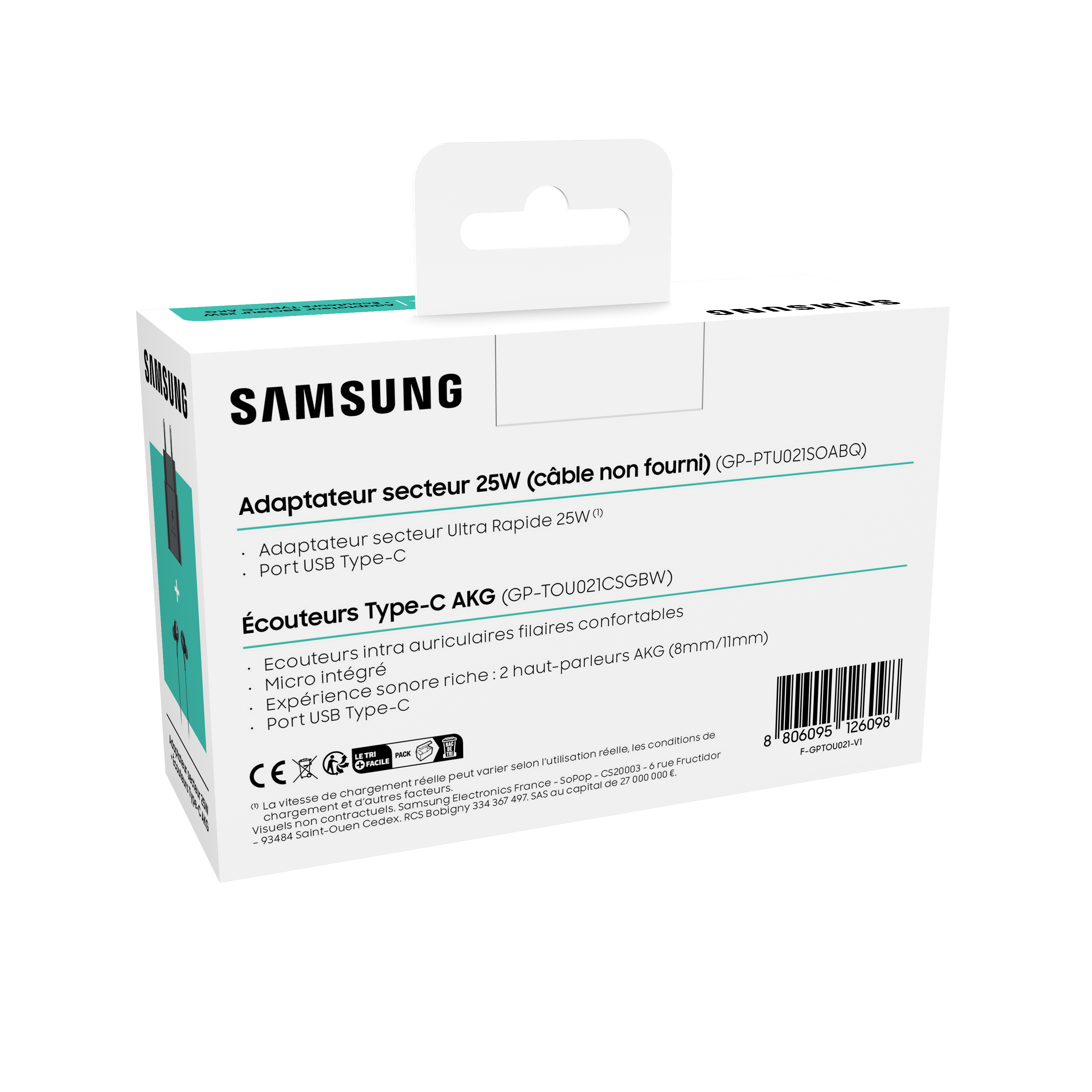 1 Chargeur secteur rapide 25W USB C + 1 Kit piéton intra USB C