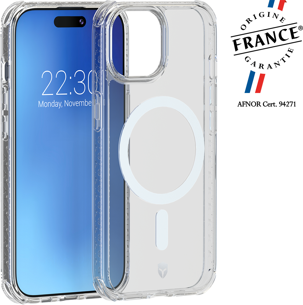 Coque renforcée Magnétique MagSafe AIR Origine France Garantie 3m + Accroche bandoulière universelle + Garantie à vie