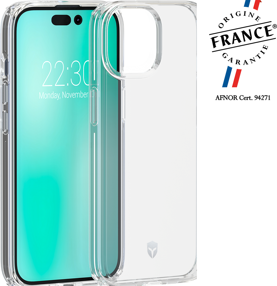 Accueil / Accessoires / Protection / Coques renforcées / Coque renforcée iPhone 15 Pro Max FEEL Origine France Garantie 2m Transparente + Garantie à vie - Origine France Garantie