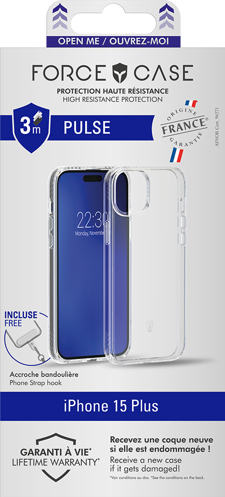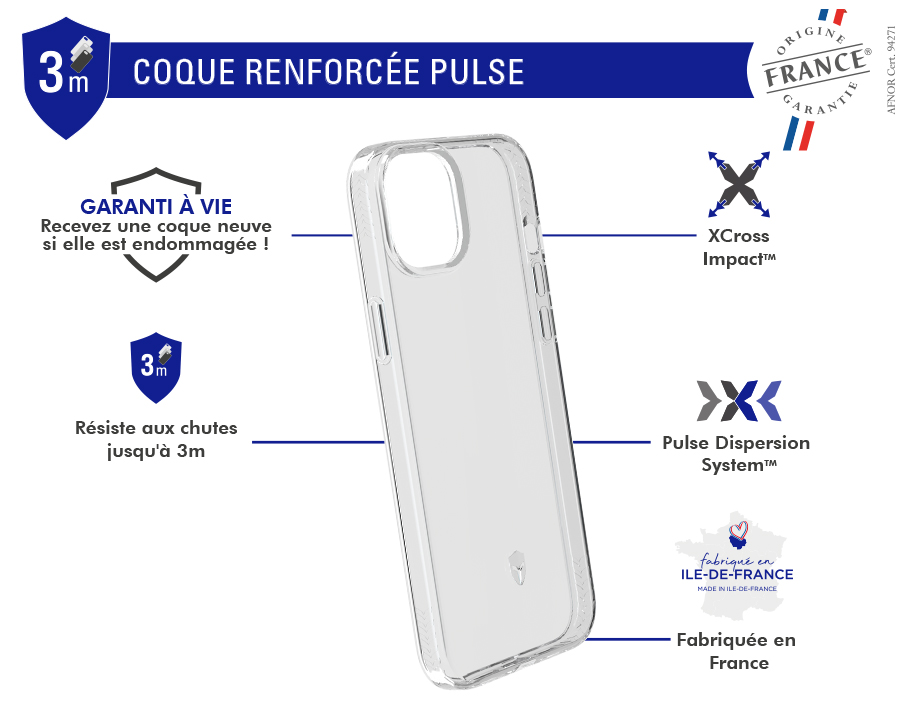 Coque renforcée PULSE Origine France Garantie 3m + Accroche bandoulière universelle + Garantie à vie