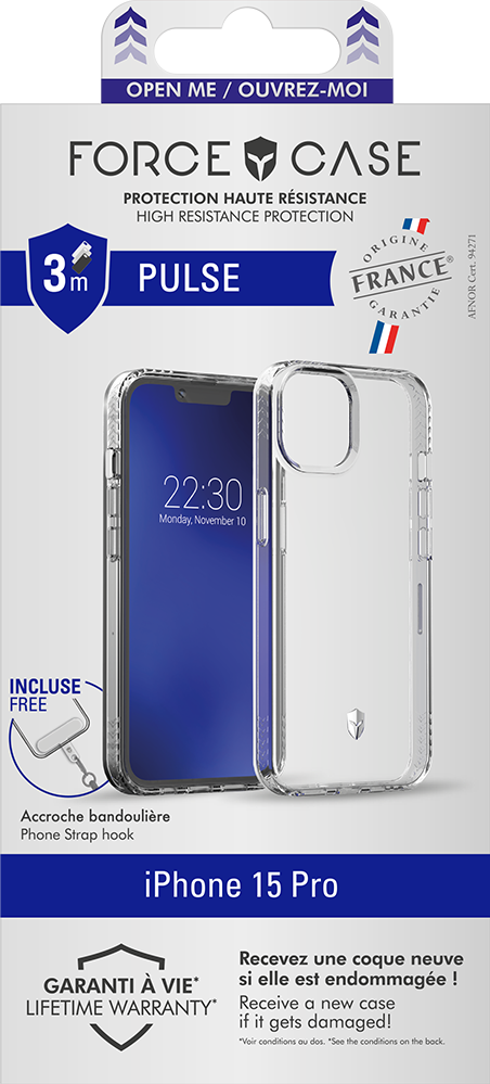 Coque renforcée PULSE Origine France Garantie 3m + Accroche bandoulière universelle + Garantie à vie