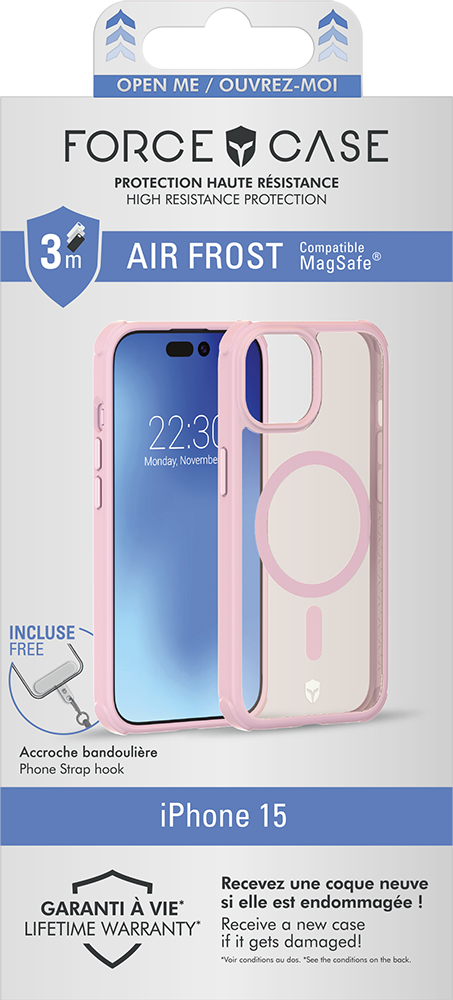 Coque renforcée Magnétique MagSafe AIR Frost 3m + Accroche bandoulière universelle + Garantie à vie