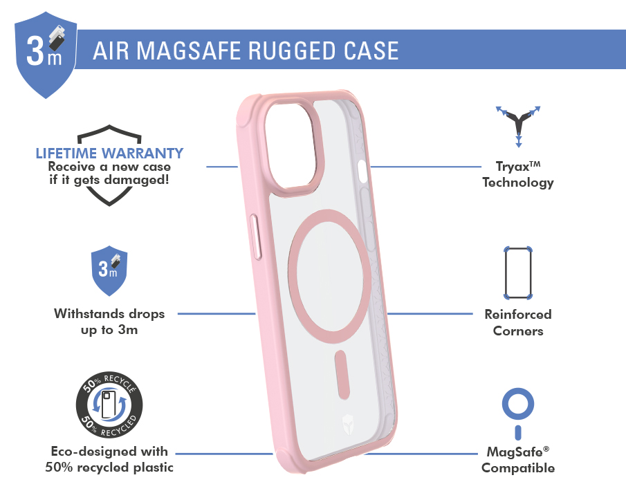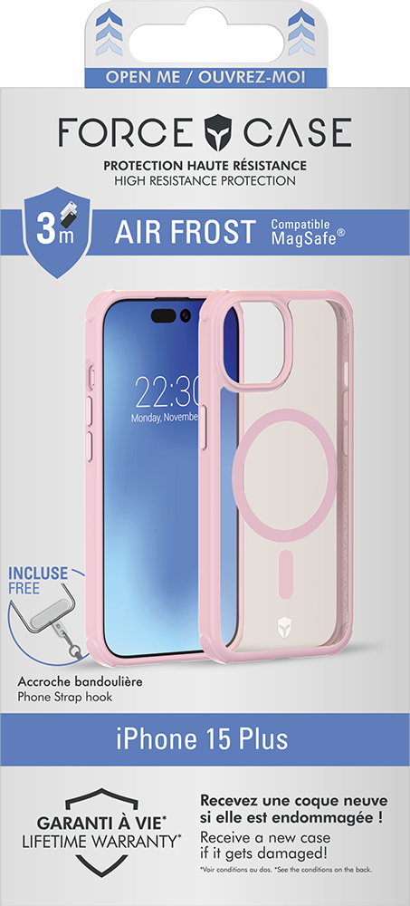 Coque renforcée Magnétique MagSafe AIR Frost 3m + Accroche bandoulière universelle + Garantie à vie