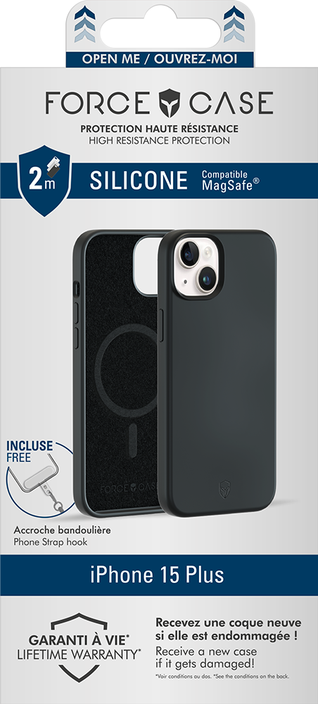 Coque renforcée Magnétique MagSafe SILICONE 2m + Accroche bandoulière universelle + Garantie à vie