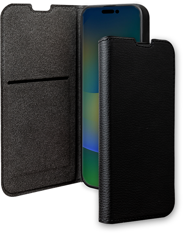 Folio iPhone 15 Pro Wallet Fonction Stand Noir - Certifié GRS