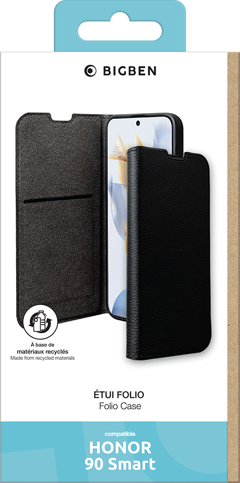 Fonction Stand - Certifié GRS - Coque rigide au dos, Anti-chocs, Rabat avant protecteur, Porte Carte, Fonction Stand vidéo, 65% Plastique Recyclé GRS