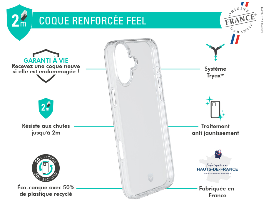 Coque renforcée FEEL Origine France Garantie 2m + Garantie à vie
