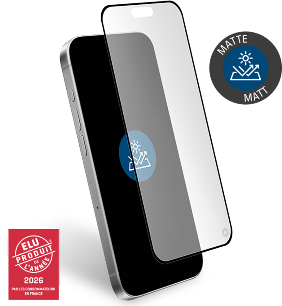 Protège écran Mat Anti-reflet 2.5D Verre trempé + Kit de nettoyage + Adhésif antistatique + Kit de pose biodégradable exclusif dédié + Garantie à vie
