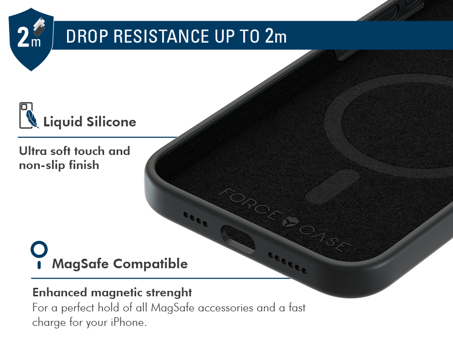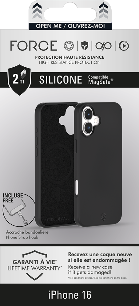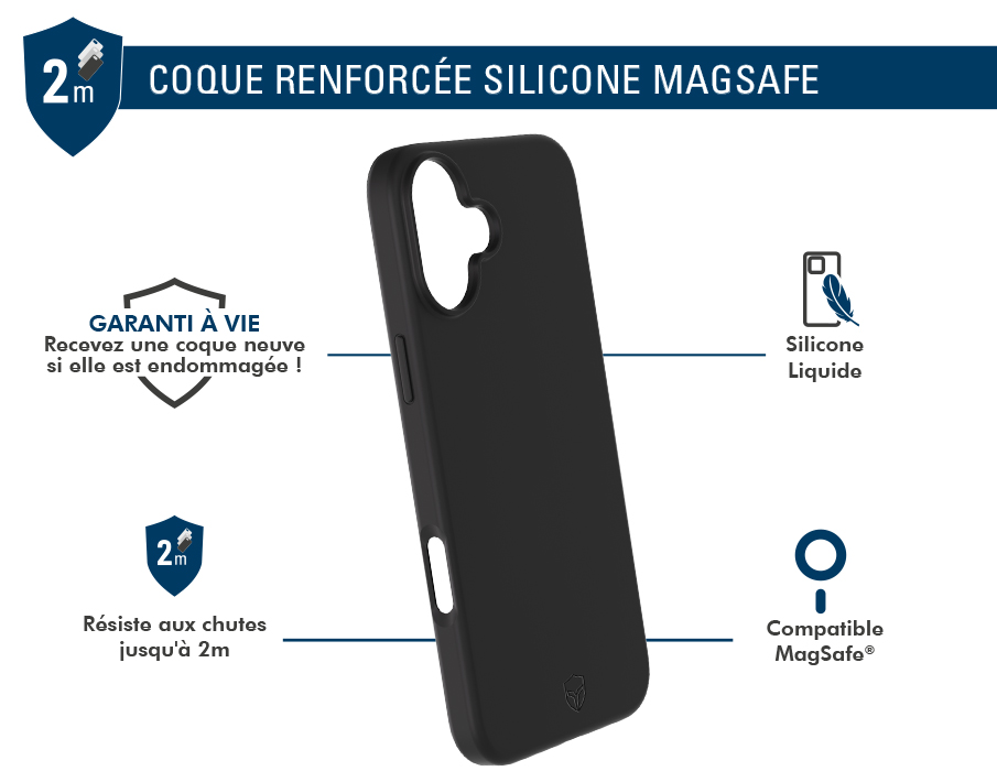 Coque renforcée Magnétique MagSafe SILICONE 2m + Accroche bandoulière universelle + Garantie à vie