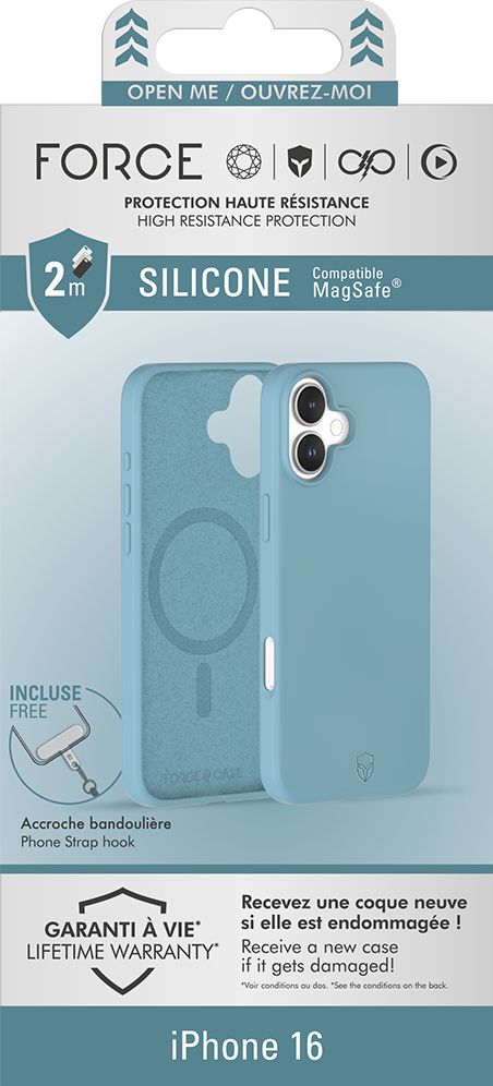 Coque renforcée Magnétique MagSafe SILICONE 2m + Accroche bandoulière universelle + Garantie à vie