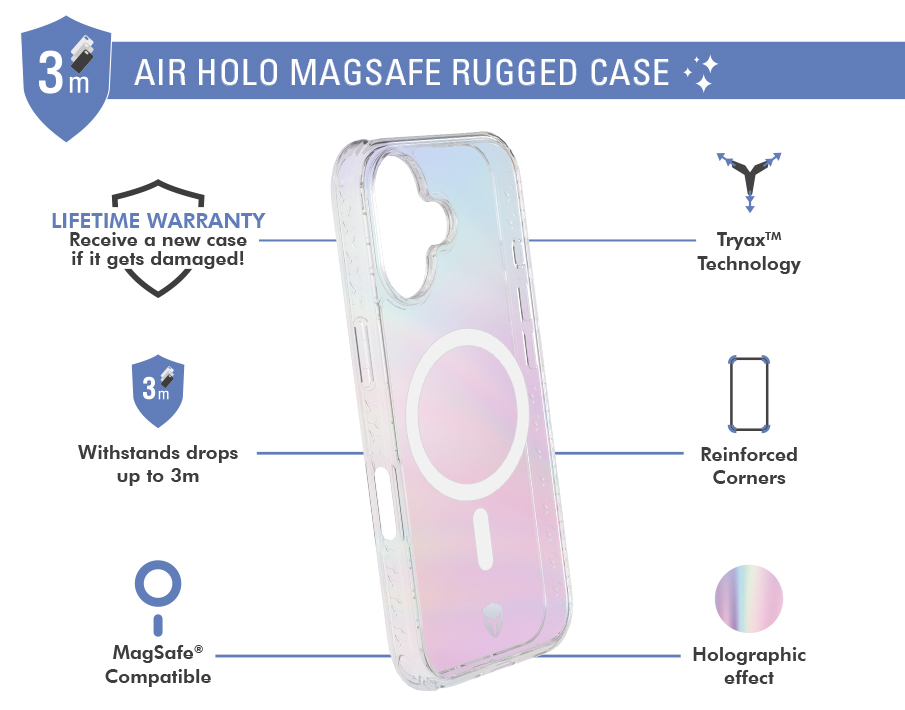 iPhone 16 MagSafe Reinforced Case AIR 3m Transparent Holographic + Lifetime Warranty