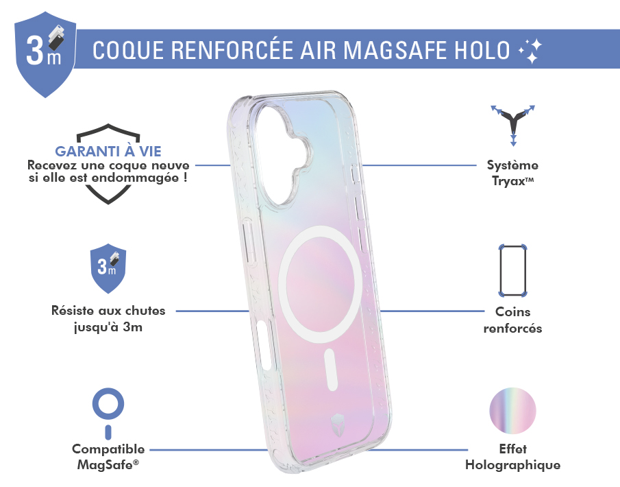 Home / Accessories / Protection / Reinforced cases / iPhone 16 MagSafe Reinforced Case AIR 3m Transparent Holographic + Lifetime Warranty