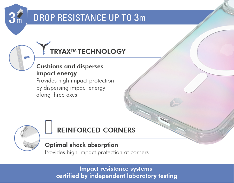 • Feature(s) : Drop Resistance: 3m - Anti-impact technologies, 360° protection, Raised edges