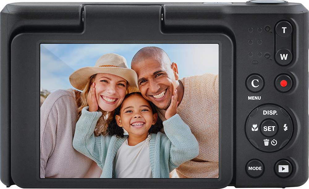 L'écran intégré inclinable permet de visualiser vos prises de vue en direct ou en lecture, et le stockage sur carte Micro SD vous assure une bonne capacité pour vos clichés, sans vous soucier de manquer de place.