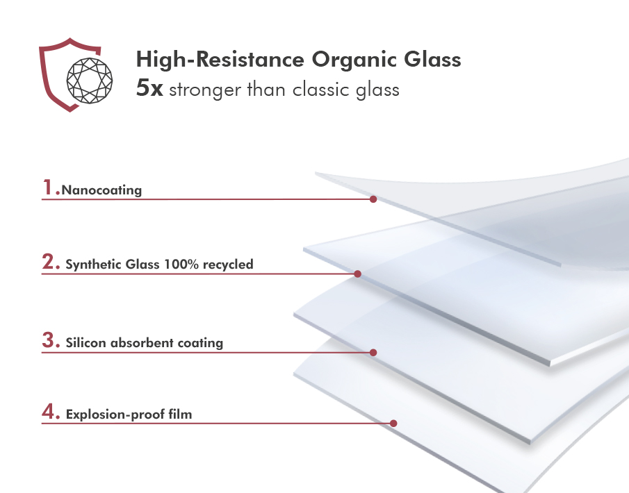 Traitement oléophobique anti-traces de doigts et conception anti-explosion qui évite les fragments dangereux et permet de le retirer facilement.