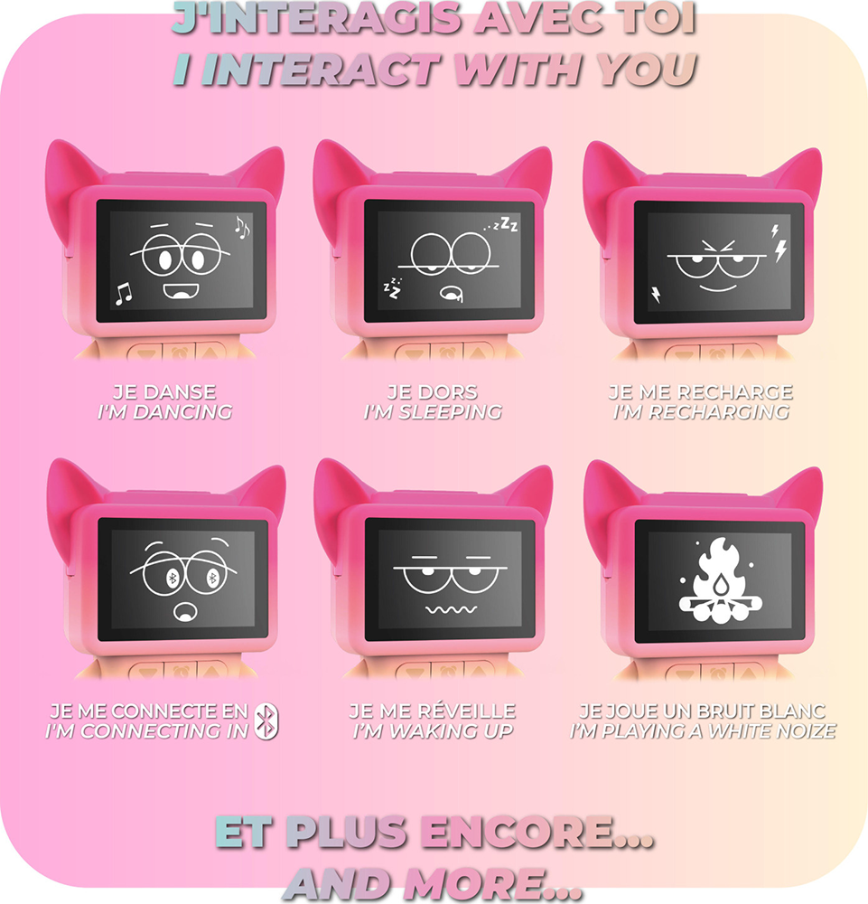• Contenu du pack : Enceinte dansante animal Bluetooth® 3W + Câble de charge USB C + Guide d'utilisation/Sécurité/Garantie