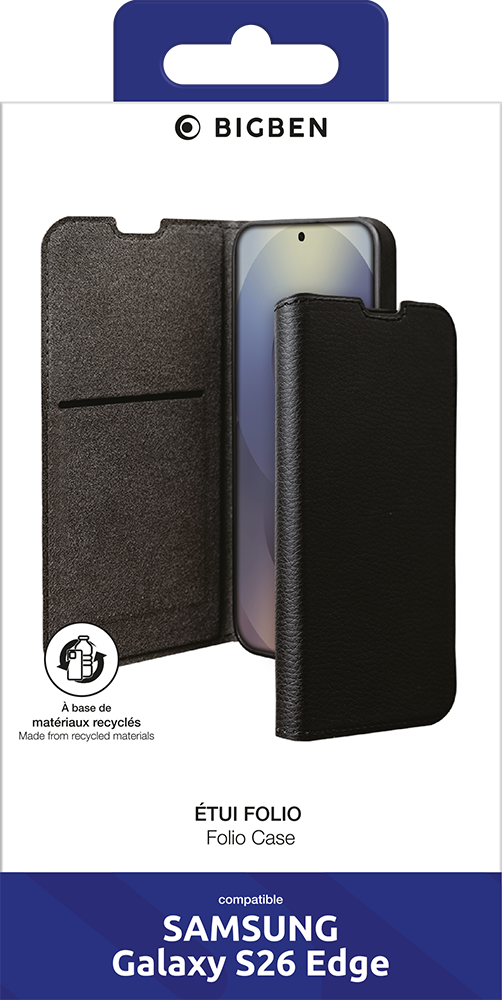 Fonction Stand - Certifié GRS - Coque rigide au dos, Anti-chocs, Rabat avant protecteur, Porte Carte, Fonction Stand vidéo, 65% Plastique Recyclé GRS