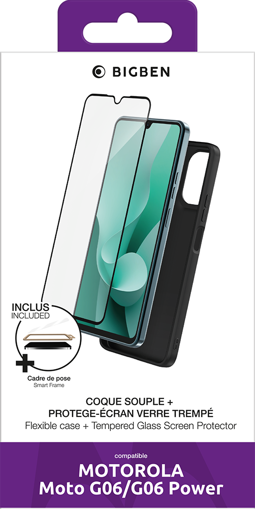 Pack 2 en 1 Coque Souple Noire + Protège écran 2.5D + SmartFrame™ + SmartFrame™