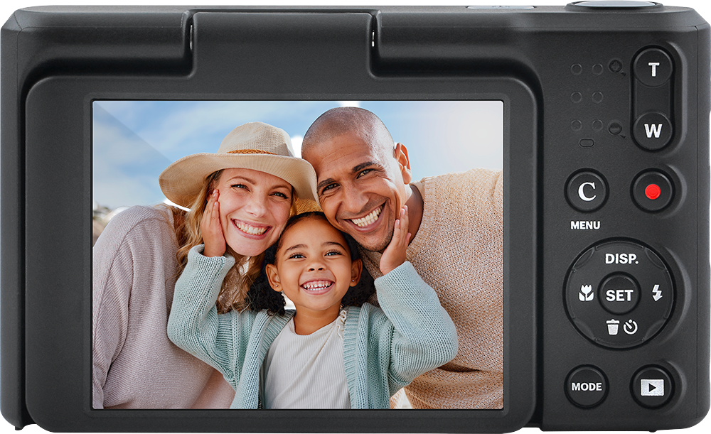 L'écran intégré inclinable permet de visualiser vos prises de vue en direct ou en lecture, et le stockage sur carte Micro SD vous assure une bonne capacité pour vos clichés, sans vous soucier de manquer de place.