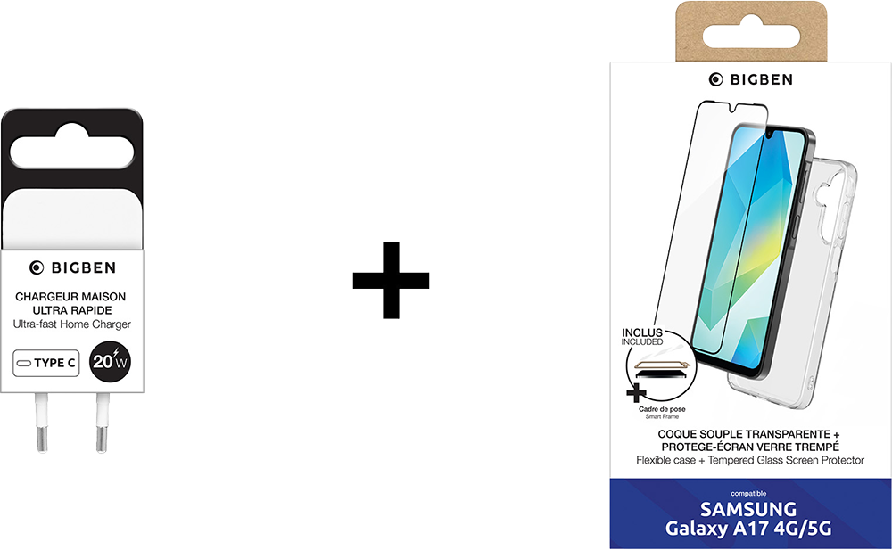 Bundle Coque Transparente + Protège écran + Chargeur USB C 20W PD + Guide d'utilisation/Sécurité/Garantie