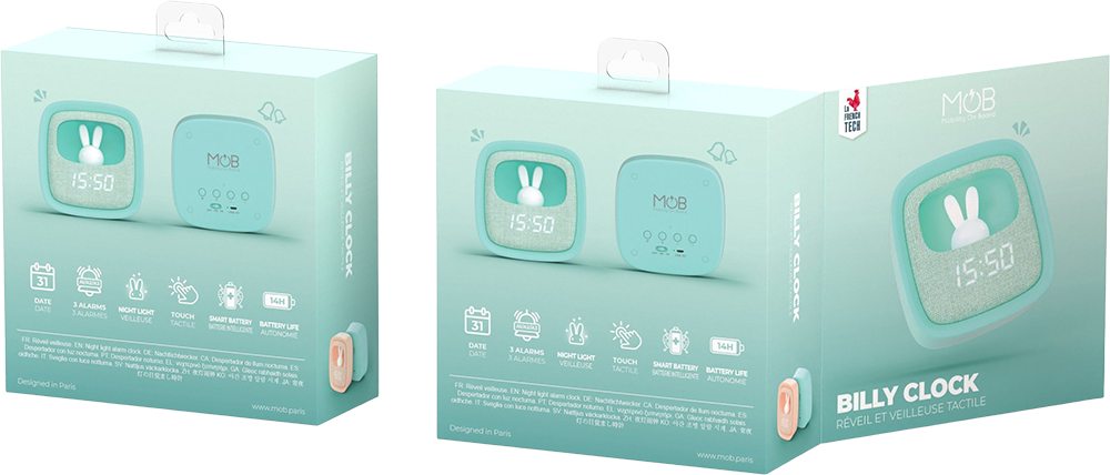 The Billy Clock is portable and can be carried anywhere in the house. It recharges easily thanks to a Type C cable supplied with the alarm clock, allowing you to enjoy its features wherever you are.