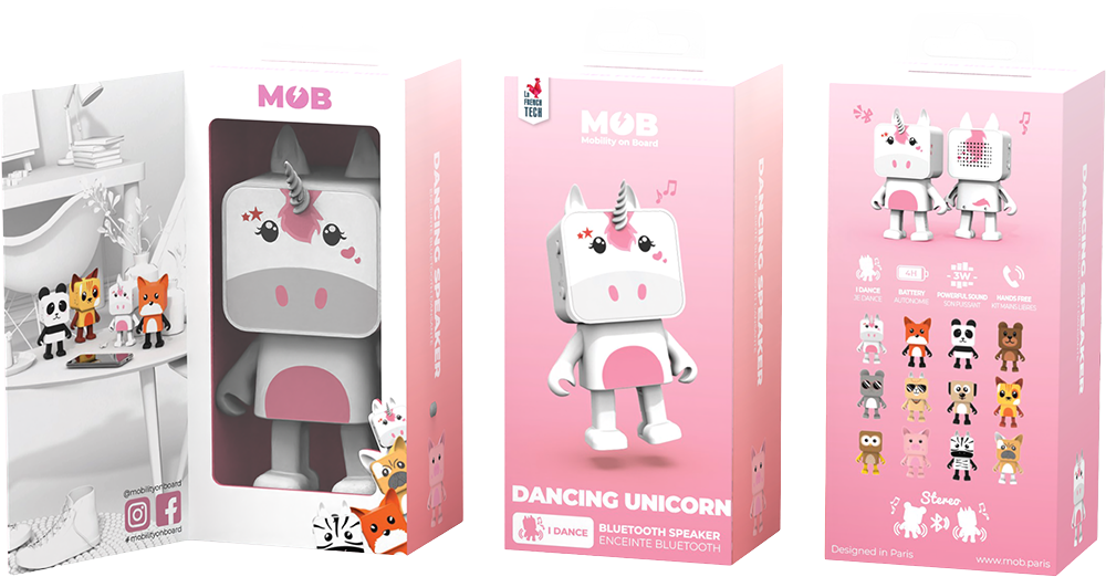 • Contenu du pack : Enceinte Bluetooth® Dancing Animal 3W + Câble de charge USB A/microUSB + Guide d'utilisation/Sécurité/Garantie