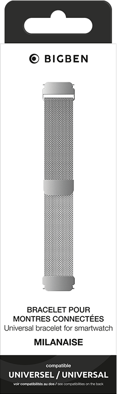 Accueil / Accessoires / Objets connectés / Montres connectées et bracelets / Bracelet Universel Milanais Acier 22mm 140 à 220 mm Argent