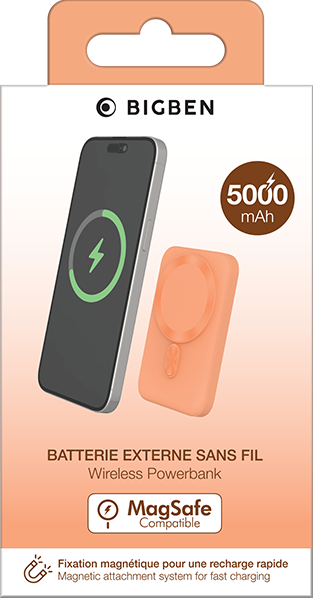 Pour une recharge plus rapide de votre iPhone, ce powerbank est compatible avec la technologie Magsafe. En effet, plusieurs aimants intégrés alignent votre iPhone compatible MagSafe avec précision et améliorent l'efficacité de la charge.