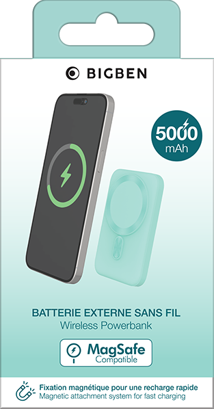Pour une recharge plus rapide de votre iPhone, ce powerbank est compatible avec la technologie Magsafe. En effet, plusieurs aimants intégrés alignent votre iPhone compatible MagSafe avec précision et améliorent l'efficacité de la charge.