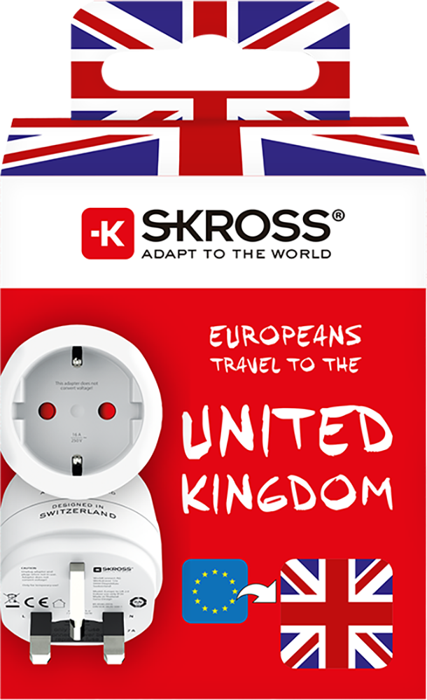 Adaptateur voyage 13A Europe vers UK 2/3 poles + Guide d'utilisation/Sécurité/Garantie