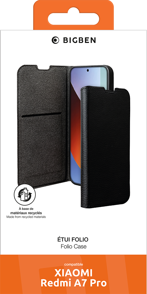 Fonction Stand - Certifié GRS - Coque rigide au dos, Anti-chocs, Rabat avant protecteur, Porte Carte, Fonction Stand vidéo, 65% Plastique Recyclé GRS